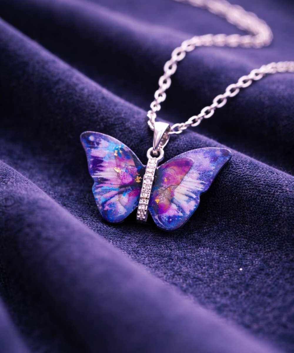 A colorful butterfly enamel pendant paired with a stainless steel chain, designed for everyday wear with a soft artistic touch.