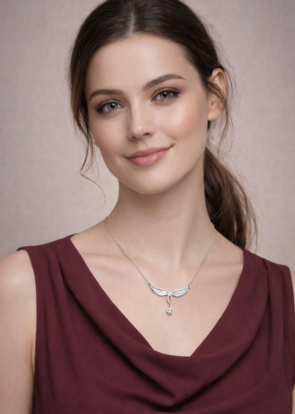 - Design: Wing-shaped pendant with crystal drop